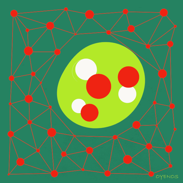 An analysis of societal statics. What holds a community together at its core? „The Fragile Net“ is a visual exploration of the stability and simultaneous vulnerability of our social structures. In a rich, dark green reminiscent of the primal force of life, a drama of passivity and creeping change unfolds. You see a safety net of interconnected individuals attempting to contain a growing danger at its center. But the real threat lies in the dynamics within the bubble: fanatics assimilate the gullible until the internal pressure pushes the outer net to its breaking point. This text and the accompanying artwork invite you to question the role of the „invisible majority.“ Why don’t those who silently watch join the stabilizing net? Think about this early and act before the system threatens to lose its grip. – You, as the viewer of the image, can take a stand –